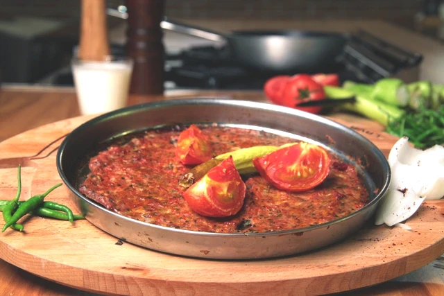 Derin bir tepsiye kıymayı, ince kıyılmış sebzeleri, maydanozu, salçaları ve baharatları koyun. Malzemeleri yaklaşık 10 dakika boyunca yoğurarak iyice harmanlayın.